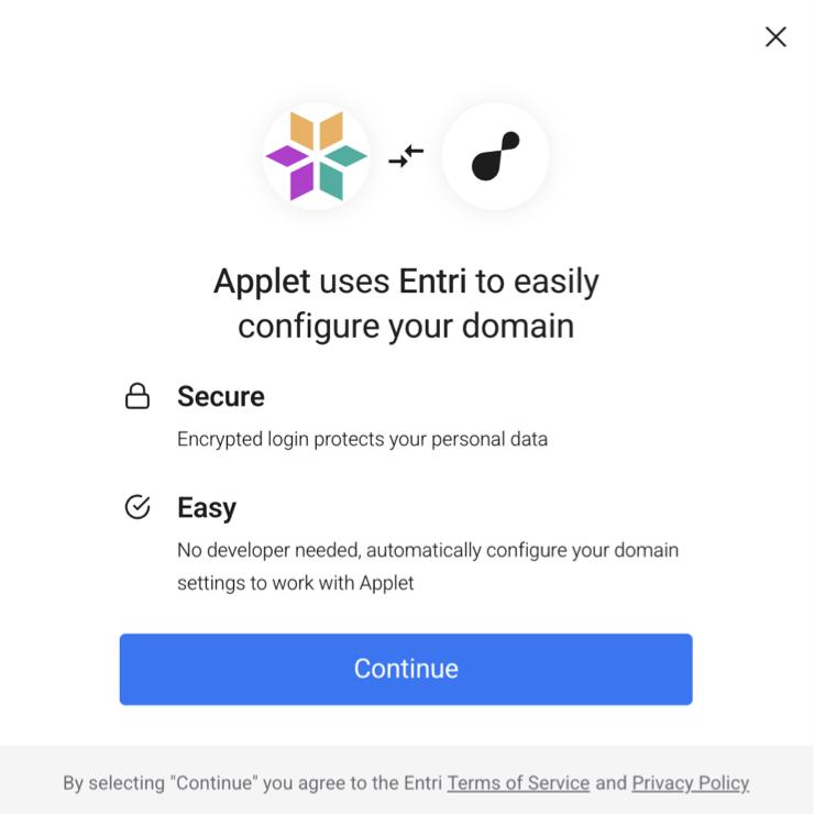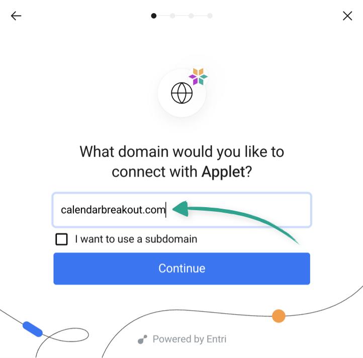 Applet uses a tool called Entri to set up your custom domain, so you’ll now click continue to follow the steps to connect it with Entri.