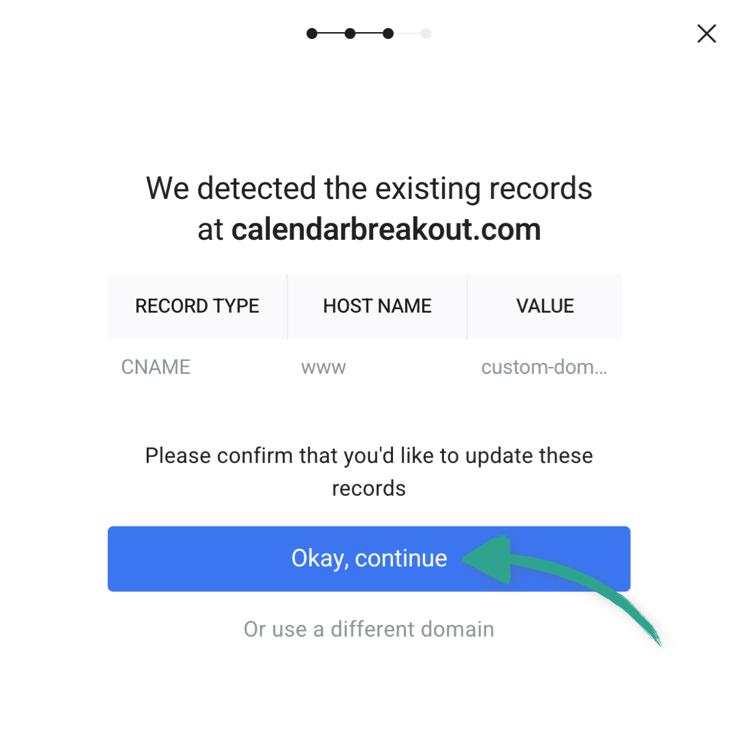 You may see a confirmation screen like this if there are existing DNS records for your domain: